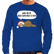 Luiaard Kerstsweater / outfit Wake me up, when christmas is over blauw voor heren. Deze Kerstsweater / trui is bedrukt met een luiaard en de tekst: WAKE ME UP, WHEN CHRISTMAS IS OVER. Deze…