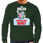 Rinkelende Kerstbal sweater / Kersttrui mijn ballen rinkelen groen voor heren. Deze Kerstsweater / trui is bedrukt met een kerstbal met daarin social media tekens en de tekst: MIJN BALLEN RINKELEN…