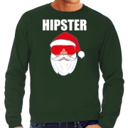 Foute Kerst sweater / Kerst outfit Hipster Santa groen voor heren. Deze Kerstsweater / trui is bedrukt met de kerstman met zonnebril en de tekst: HIPSTER. Deze Kerstsweater / Kerst trui is leuke…