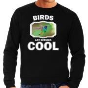 Dieren sweater/ trui kolibrie vogel vliegend zwart voor heren. Op deze sweater staat een vogels afbeelding en de tekst: birds are serious cool. Een musthave voor een echte dieren/ vogels…