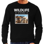 Alpaca sweater / trui met dieren foto wildlife of the world zwart voor heren. Deze sweater is bedrukt met een foto van een Alpaca met de tekst: wildlife of the world. Een gave trui voor een echte…