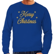 Kersttrui Merry Christmas gouden glitter letters blauw heren XL (54) -