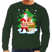 Foute kersttrui kerstman en rendier Rudolf groen heren M (50) -