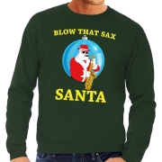 Foute kersttrui groen Blow That Sax voor heren. Deze grappige sweater voor Kerstmis heeft een print van een Kerstman die een saxofoon bespeelt. Deze kersttrui/ sweater/ sweatshirt is van…