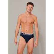 donkerblauwe rioslips voor heren met geweven elastische tailleband in een praktisch 3-pack uit de populaire SCHIESSER-serie ""95/5"" sportief geweven elastische tailleband…