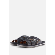 Rieker heren slipper met kruisband, uitgevoerd in een combinatie van leer en synthetisch materiaal. De inzetten en stiksels geven de slipper een stoere uitstraling. De binnenkant is gevoerd met…
