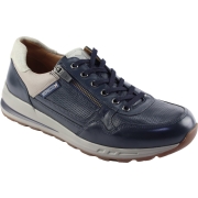 Sportieve sneaker van Mephisto in blauw-taupe calfsleer combinatie. Art: Bradley heeft en rubber profielzool. Tevens is deze sneaker uitgevoerd met een veter- en ritssluiting. wat het aan- en…