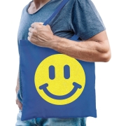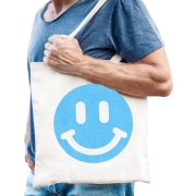 Cadeau tas voor dames - glitter Smile Emoticon - blauw - katoen - 42 x 38 cm - Moederdag - verjaarda -