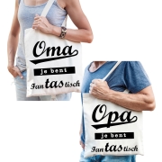 Oma en Opa je bent fanTAStisch tasje - Cadeau tassen set voor Opa en Oma. Katoenen tasjes cadeau set voor Opa en Oma, bestaande uit 2 tassen uit dezelfde serie. Een leuke boodschappen tas voor je…