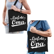Liefste Opa en Oma tasje zwart - Cadeau tassen set voor Opa en Oma -