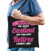 Cadeau tas voor dames - Pensioen - leukste collega - zwart/geel - katoen - 42 x 38 cm -