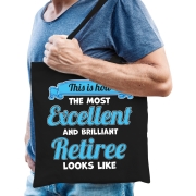 Katoenen cadeau tas voor heren. Geef je favoriete collega het perfecte afscheidscadeau met deze stijlvolle cadeau tas! De tas in zwart/blauw heeft de vrolijke tekst "This is how the most Excellent…