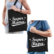 Super papa en Super mama tasje zwart - Cadeau tassen set voor Papa en Mama -