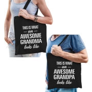 Awesome grandma en grandpa tasje zwart - Cadeau tassen set voor Opa en Oma -