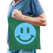 Cadeau tas voor heren - glitter Smile Emoticon - groen - katoen - 42 x 38 cm - Vaderdag - verjaardag -