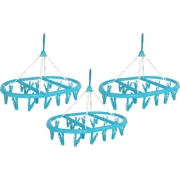 3x een lichtgewicht blauw droogcarrousel/droogmolen 18 knijpers, geschikt voor licht wasgoed zoals sokken of ondergoed. Het wasrekje kunt u bijvoorbeeld aan de waslijn hangen of op de camping aan…
