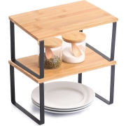 2x MSV keukenrek/opbergrek/aanrecht organizer gemaakt van metaal en bamboe hout in minimalistisch design. Handige plankjes voor in de keuken om o.a. kruidenpotjes, voorraadpotten en borden op te…