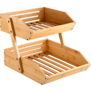 Keuken aanrecht etagiere - 2 niveaus - bamboe - rekje/organizer - 38 x 32 x 33 cm - lichtbruin -