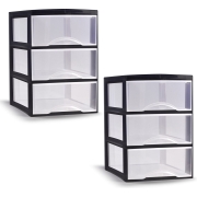Set van 2x Plasticforte ladeblokje/bureau organizer met 3 lades in de kleuren transparant/zwart. Een handig ladeblokje om uw kleine artikelen in op te bergen. Ideaal voor op uw thuis kantoor/…