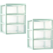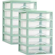 Set van 2x Plasticforte ladeblokje/bureau organizer met 3 grote lades in de kleuren transparant/mintgroen. Een handig ladeblokje om uw kleine artikelen in op te bergen. Ideaal voor op uw thuis…