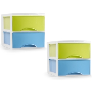 Set van 2x PlasticForte ladeblokje/bureau organizer met 2 grote lades in willekeurige kleuren. Een handig ladeblokje om uw kleine artikelen in op te bergen. Ideaal voor op uw thuis kantoor/…