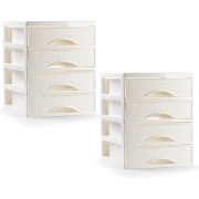 Ladeblokje/bureau organizer - 2x - 4 lades - ivoor wit - L18 x B21 x H23 cm - plastic -