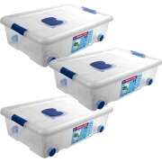 3x Stuks opberg boxen/opbergdozen met wielen 31 liter 61 x 44 x 17 cm kunststof -
