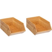 Stapelbare opbergmand 1 vaks - 2x - L18 x B31 x H12 cm - bamboe hout - lichtbruin - organizer -