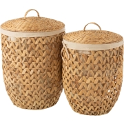 J-Line Set Van 2 Wasmanden + Deksel Waterhyacinth Naturel