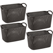 Opbergmand/kastmandje - 4x stuks - 19 liter - donkerbruin - kunststof - 29 x 39 x 25 cm -