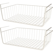 2x MSV Kastmandje/opberg/hang mandjes, gemaakt van rvs metaal in de kleur wit. Afmetingen: B30 x D27 x H16 cm. Handige draadmanden voor kleine kleding stukken en andere spullen om op te bergen en…
