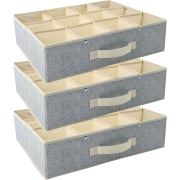 3x MSV kleding/kast organizer/sokken mandjes met 12 vakken in de kleur grijs. Handige opbergbox voor in lades of de kledingkast. Gebruik de mand om bijvoorbeeld sokken, ondergoed en handdoeken…