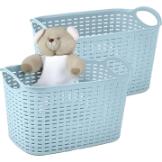 Opbergmand - 4x - Kastmand - rotan kunststof - lichtblauw - 5 Liter - 15 x 28 x 13 cm -