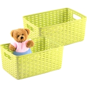 Opbergmand - 4x - Kastmand - rotan kunststof - limegroen - 6 Liter - 19 x 29 x 13 cm -