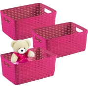 Opbergmand - 3x - Kastmand - rotan kunststof - fuchsia roze - 12 Liter - 30 x 37 x 13 cm -