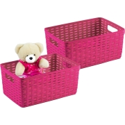 Opbergmand - 4x - Kastmand - rotan kunststof - fuchsia roze - 10 Liter - 22 x 33 x 16 cm -