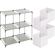 Kastmandjes/opberg mandjes - wit - 4x stuks van 29 Liter - In rekje van 67 x 68 cm -