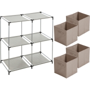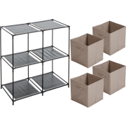Kastmandjes/opberg mandjes - beige - 4x stuks van 29 Liter - In rekje van 67 x 68 cm -