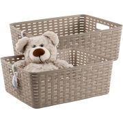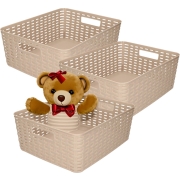 Opbergmand - 3x - Kastmand - rotan kunststof - taupe - 12 Liter - 30 x 37 x 13 cm -