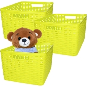 Opbergmand - 3x - Kastmand - rotan kunststof - limegroen - 18 Liter - 29 x 39 x 20 cm -