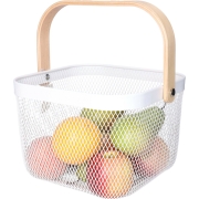 Opbergmand - met handgreep - wit - metaal/hout - 17 x 24 x 24 cm - draadmand -