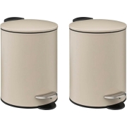 Prullenbak/pedaalemmer - 2x - metaal - beige - 3 liter - 16 x 25 cm - Badkamer/toilet -