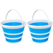 2x Opvouwbare emmer in het blauw/wit met een inhoud van circa 5 liter per emmer. Door het opvouwbare ontwerp is dit teiltje ruimtebesparend en erg handig voor bijvoorbeeld op de camping. Afmeting…