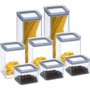 Voedsel bewaren keuken handige mooie voorraadpotten/bussen serie, set van 8x stuks, gemaakt van transparant kunststof met luchtdichte siliconen deksel. Inhoud: 3x 500 ml, 3x 1000 ml, 2x 1500 ml.…