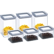 Voedsel bewaren keuken handige mooie voorraadpotten/bussen serie, set van 6x stuks, gemaakt van transparant kunststof met luchtdichte siliconen deksel. Inhoud: 3x 1000 ml, 3x 500 ml. Vierkant…