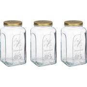 Voorraadpot/bewaarpot Square - 3x - glas - 3L - transparant/goud - D13 x H25 cm - voedsel bewaren -