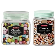 12 stuks kunststof keuken voedsel voorraadpot / weckpot in het mintgroen, met inhoud van 1.6 liter, en met draaideksel. Formaat: 10 x 12 cm. Leverbaar in verschillende formaten. Keuken opslag…