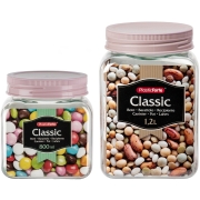 Plasticforte - 12x kunststof keuken voorraadpotten - weckpotten - 0.8 en 1.2 liter - roze -