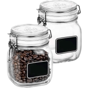 Voorraad/weckpot - 2x - transparant - glas - 22 x 10,6 cm - 1,5 L - krijtplaatje - Bormioli Rocco -