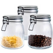 Set van 3x stuks voorraadpot/weckpot 2000 ml glas met metalen beugelsluiting. De inmaakpot is ideaal om producten in te conserveren. Geschikt voor in de vaatwasser: ja, echter wordt handwas…